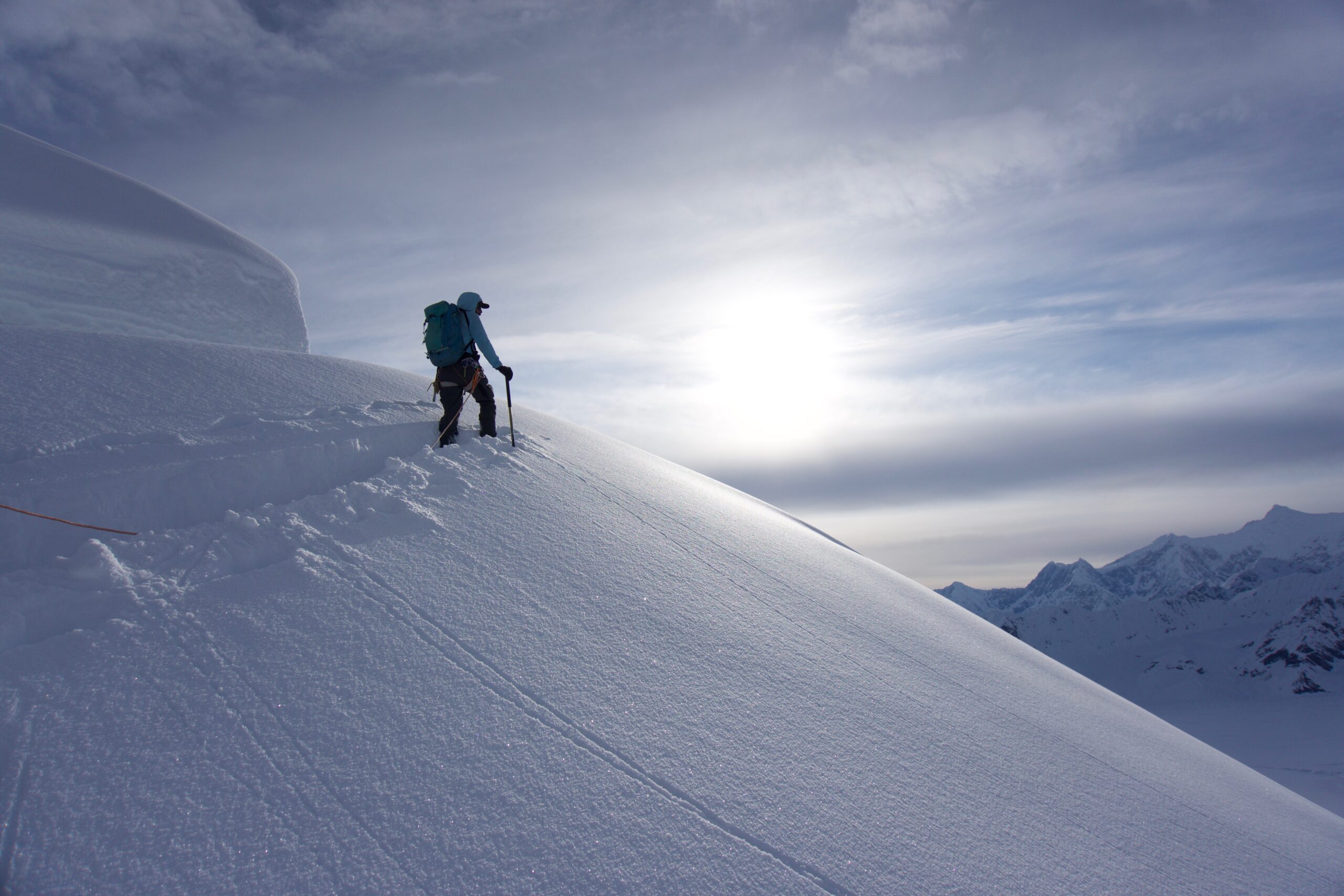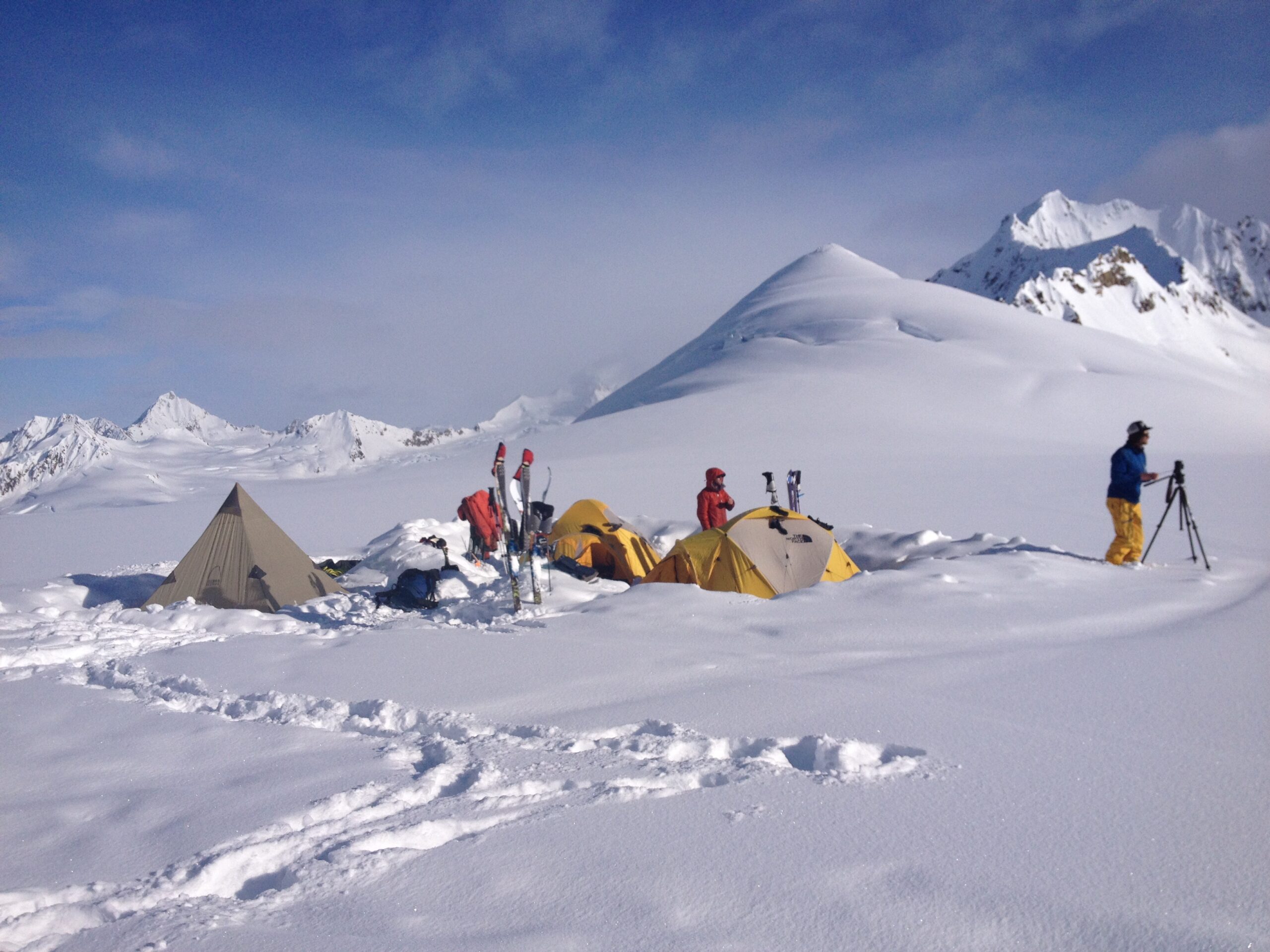You never know what the weather is going to do while your sleeping, out skiing, or even cooking. Get in the habit of closing tent doors, leaving gear and food bags piled together and keeping anything that can blow away clipped in. A handful of the small “not for climbing” carabiners work great for this. If you don’t, you’ll feel pretty helpless in your down booties watching your sleeping pad blow down the glacier never to be seen again.
