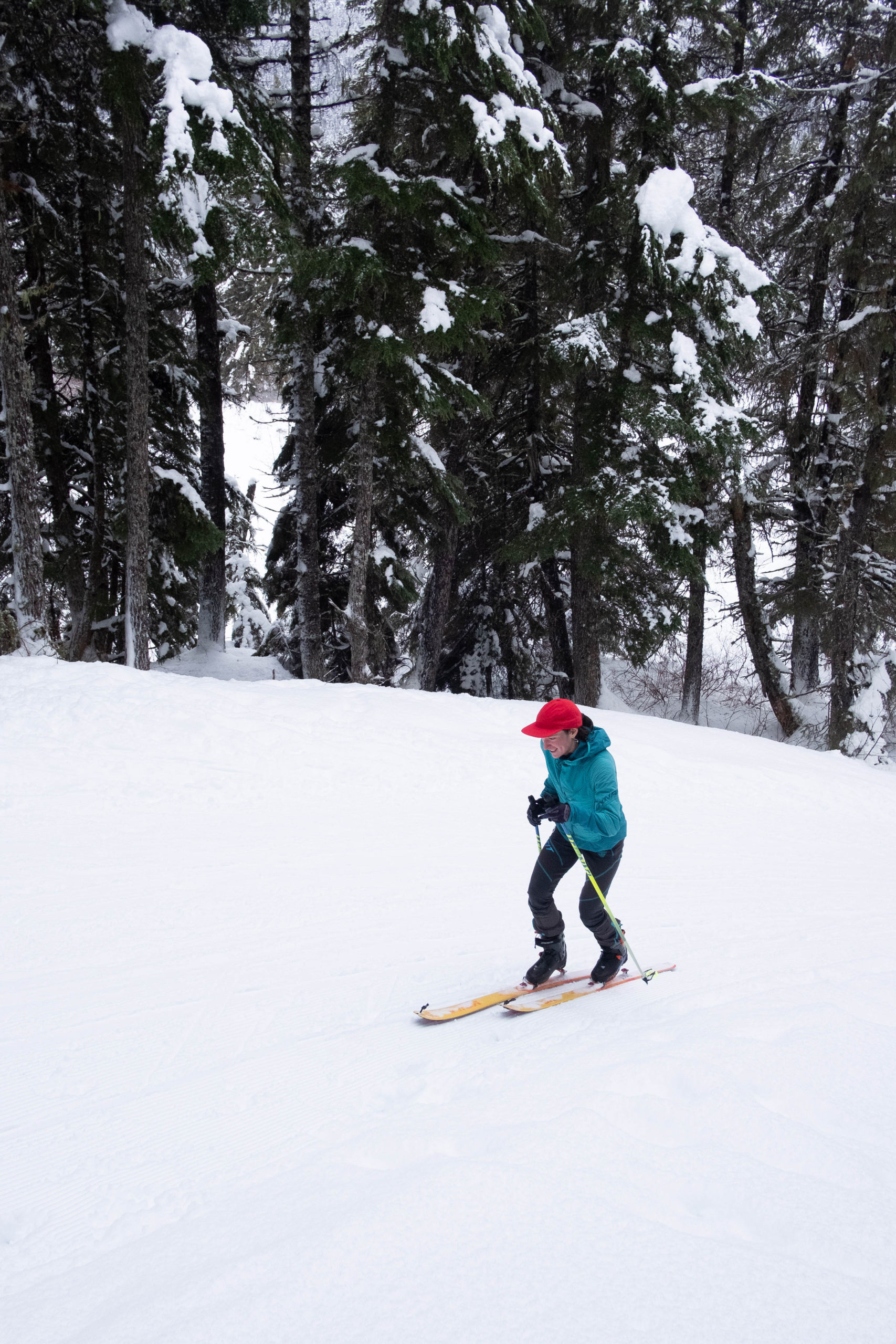 Transitioning from ski to walk should be also be practiced so you don’t forget a step and, for example, start walking while your boots are still in ski mode… or forget to flip a riser and start walking just to end up locking your heel down. Yeah, I speak from experience 😉. Skis DO come off the feet for this transition!