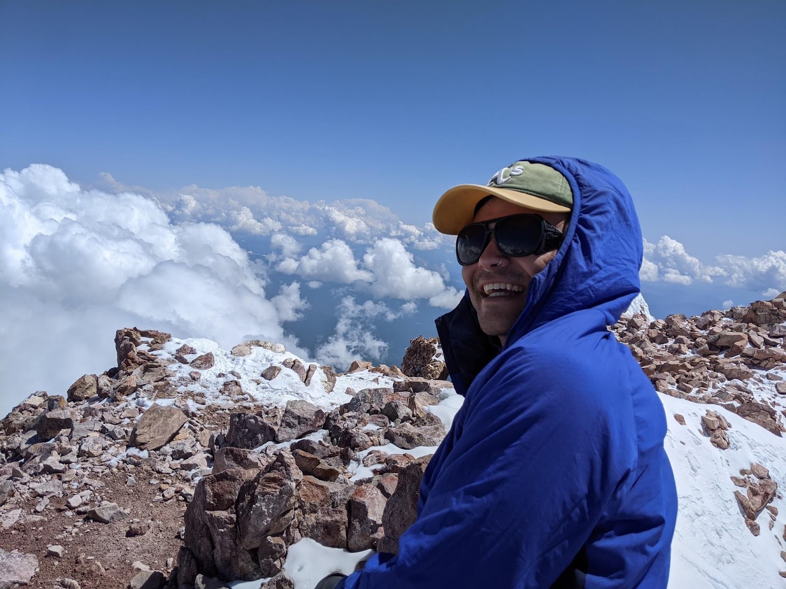 To our right stood the oldest structure of modern Mt. Shasta, the Sergeant’s Ridge cone, which grew over a period of eruptions and material upwellings over 100,000 years ago. Our route was straight up the gut of Avalanche Gulch, up to a saddle at above 12,000 ft; and then up and over Misery Hill to the summit. The route to Misery Hill lies entirely on Shasta’s second volcanic cone, the Misery Hill cone, which, at 25,000 years old, is much younger than the Sergeant’s Ridge cone. It takes its name from the aptly named false summit that awaited our high elevation slogging.