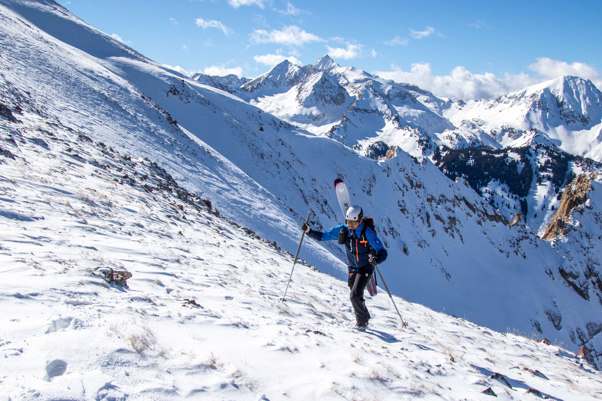 Gaining the winter summit of the Pyramid Peak requires navigating deeply faceted snow as it sloughs off the red bands of crumbing sedimentary rock that make up this part of the Elk Mountains. The summit block of Pyramid Peak is steep and impermanent, with thousand-foot falls on either side. Getting to the top is a practice of focus and finesse. Successfully skiing this peak is not only a test of confidence on steep terrain but also the ability to track the season’s snowpack and catch a small window of ideal conditions.