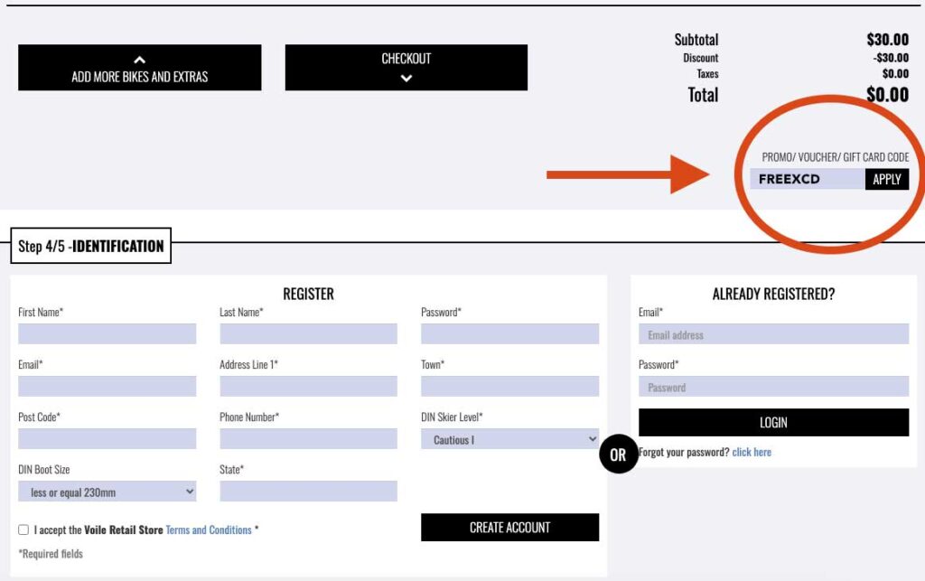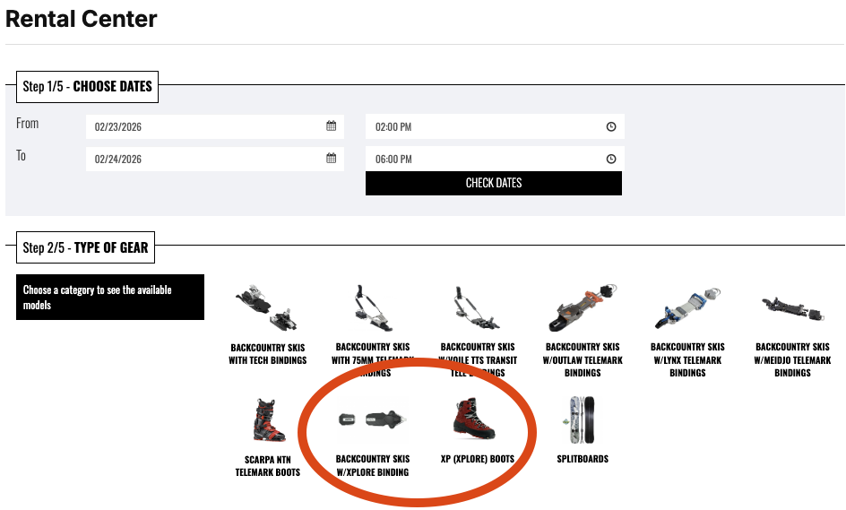 Pick your boot + binding + ski combination from the available XCD options. Limited to one setup per person booking. - Enter the Promo Code