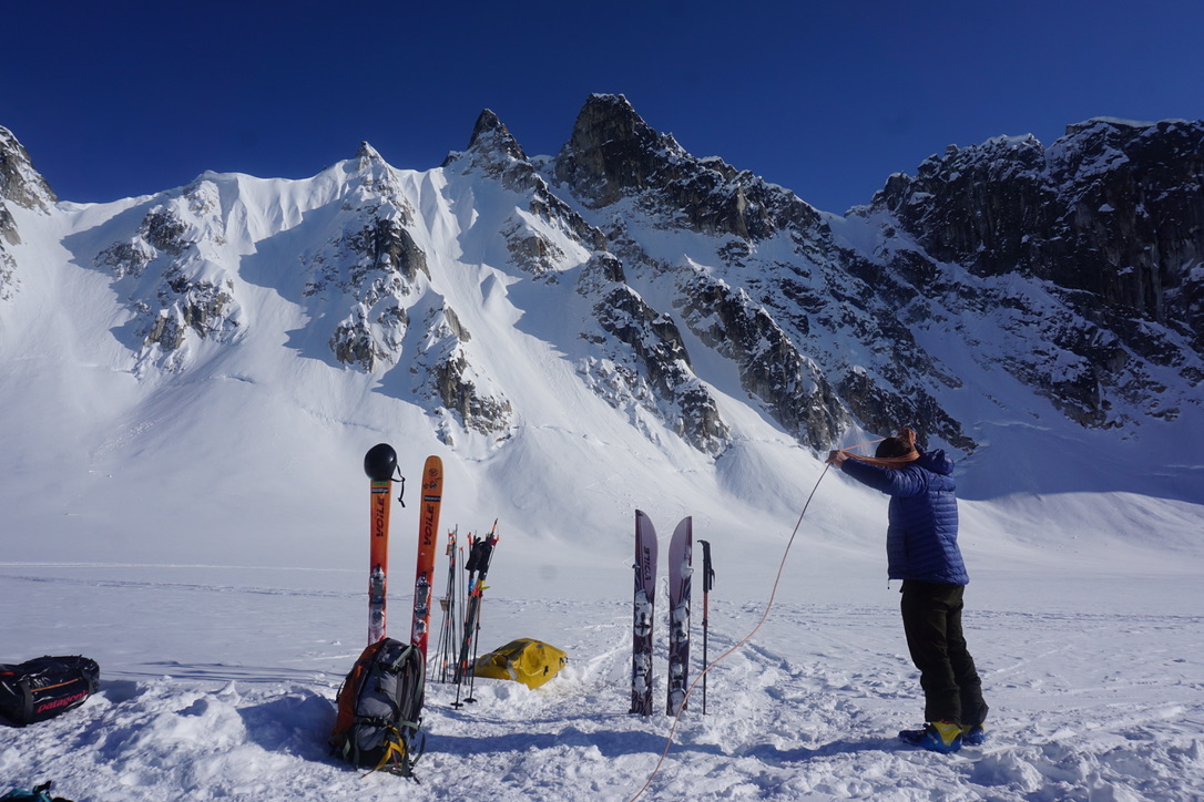 When possible, create a network of skin tracks that don’t interrupt quality fall lines. Set user-friendly tracks that access multiple different locations and runs. Slowly building your skin track network throughout the week will afford the best balance of travel efficiently and dilute trail breaking a little bit each day. Also, it is nice to be a Guide that comes into a hut for a week of work, and sees that the previous group was thoughtful in their track setting 😉