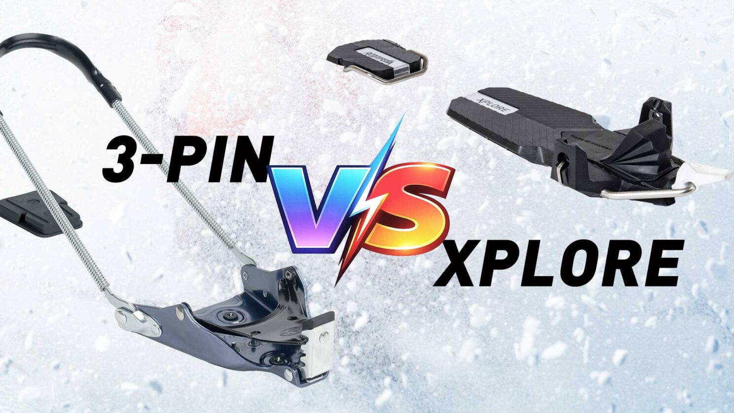 The main difference is the interface and how power is transferred through the system. Xplore uses a modern toe-pin connection with interchangeable flexors with varying stiffness levels, while 3-pin relies on a duckbill interface with cables for added support. On snow, the performance is more similar than different when boots are comparable.